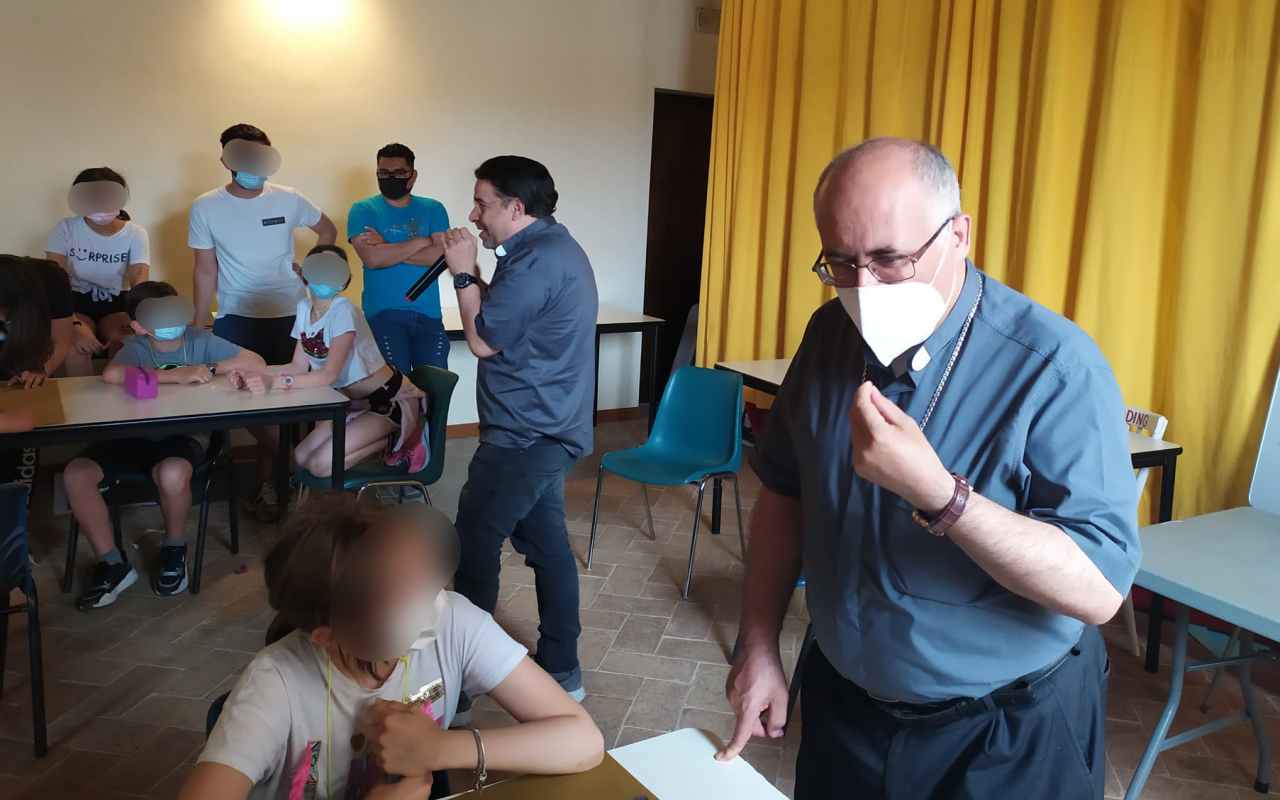 Mons. Massara ha dedicato il suo tempo ai bambini del centro estivo parlando, giocando a biliardino e condividendo il pranzo con loro. Un momento emozionante per i piccoli che hanno accolta a braccia aperte il Pastore della diocesi.
