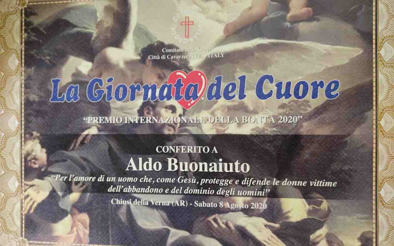 “Per l’amore di un uomo che, come Gesù, protegge e difende le donne vittime dell’abbandono e del dominio degli uomini”. E’ questa la motivazione con cui don Aldo Buonaiuto, fondatore di In Terris e sacerdote della Comunità Papa Giovanni XXIII, da anni impegnato nella lotta contro lo sfruttamento della prostituzione e la tratta degli esseri umani, ha ricevuto il “Premio Internazionale della Bontà 2020”.