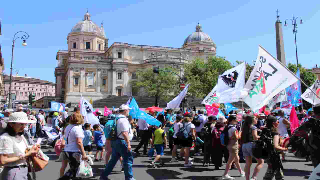 “Vita”, scandiscono tante volte, con spirito di partecipazione, le migliaia di persone che sono giunte a Roma da tutta Italia per prendere parte alla prima manifestazione nazionale “Scegliamo la vita” che si è tenuta ieri, un’iniziativa che ha riunito un centinaio di associazioni, laiche e religiose, oltre a tante famiglie e cittadini, per promuovere la cultura della cura e il sostegno ai più fragili della società, come persone con disabilità, madri con gravidanze difficili, bambini non ancora nati. Un messaggio di speranza per dire all’altro “per me sei importante” e invitare a custodire la vita umana, nella sua unicità, dal concepimento alla morte naturale. All’opposto di quella cultura dello scarto, segnata dall’indifferenza, più volte denunciata da papa Francesco. In un assolato sabato di maggio, un lungo corteo composto da giovani coppie, famiglie, ragazze e ragazzi, nonni, ha sfilato per il centro della Capitale in clima di festa, per ritrovarsi come “piazza” a San Giovanni in Laterano, unita ad ascoltare le testimonianze di giovani donne e madri che hanno portato momenti di forte vissuto. “Una piazza meravigliosa”, dichiara a Interris.it il senatore Simone Pillon, che aggiunge che “la vita, dal concepimento alla morte naturale, va difesa sempre”. “Bisogna avere il coraggio di superare delle leggi ideologiche”, continua il parlamentare, che in merito al fine vita (c’è in discussione il disegno di legge Bazoli-Provenza sulla morte volontaria medicalmente assistita) dichiara “vanno sempre garantite, a tutti, le cure. Come siamo contrari all’accanimento terapeutico, siamo anche contro l’abbandono terapeutico”.